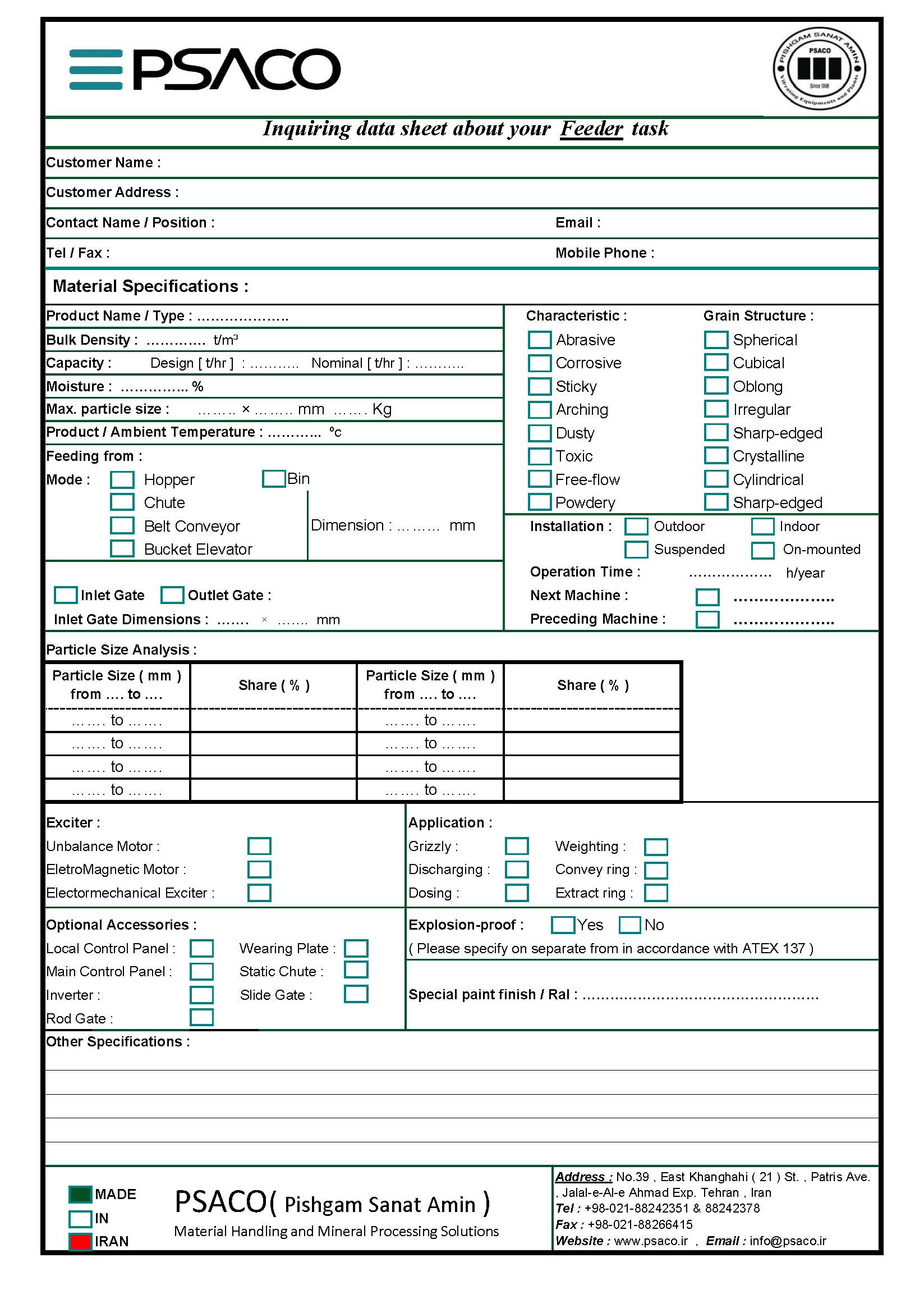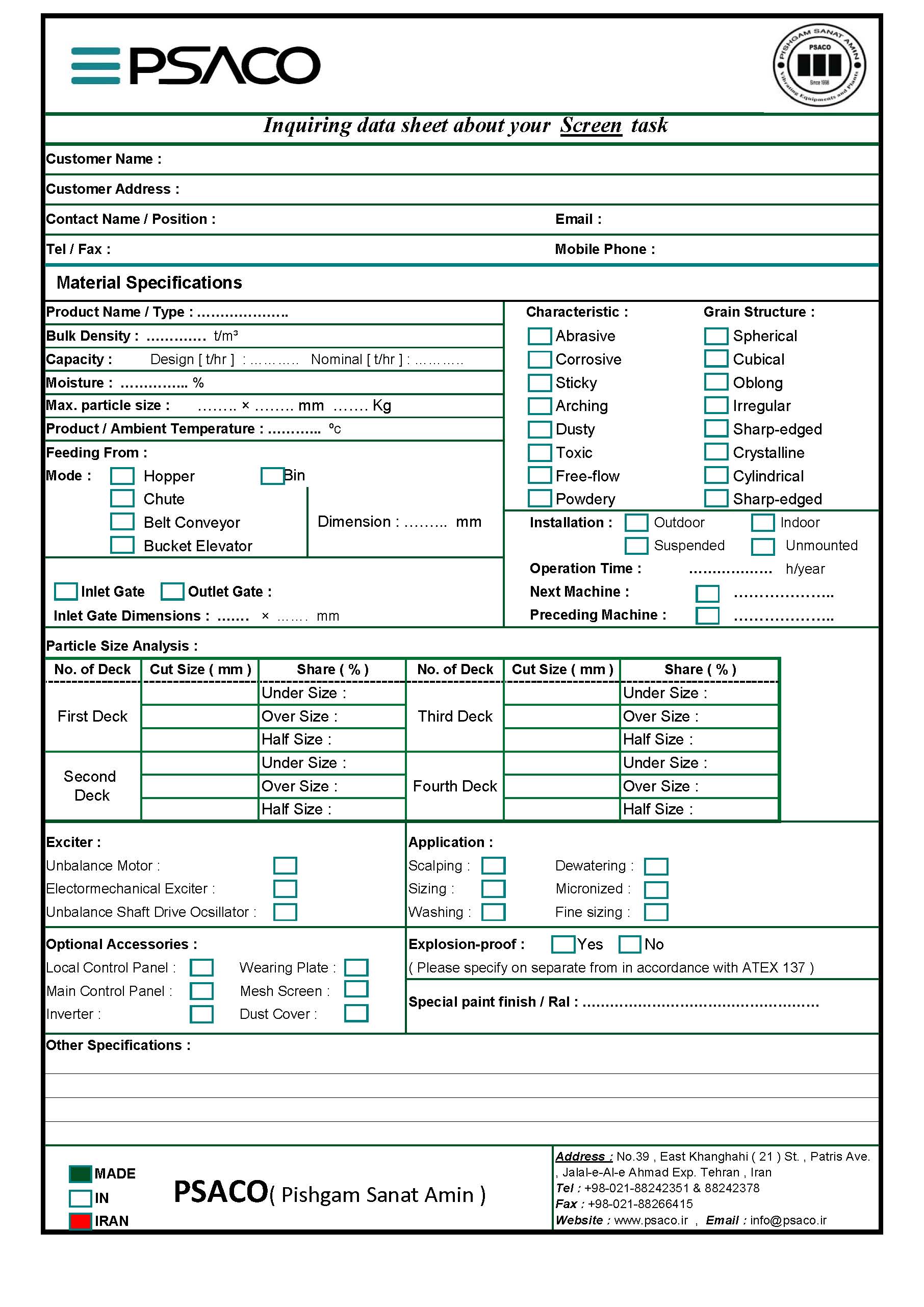 Vibration Screen's Request Form